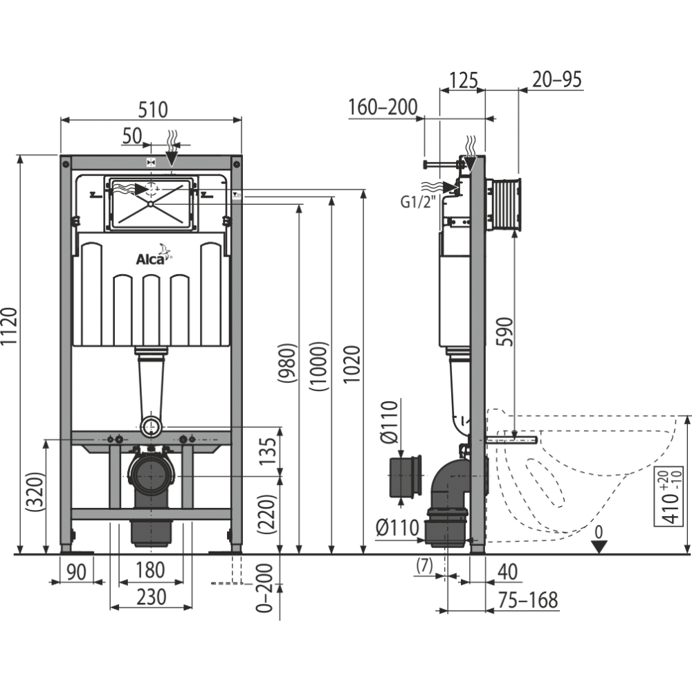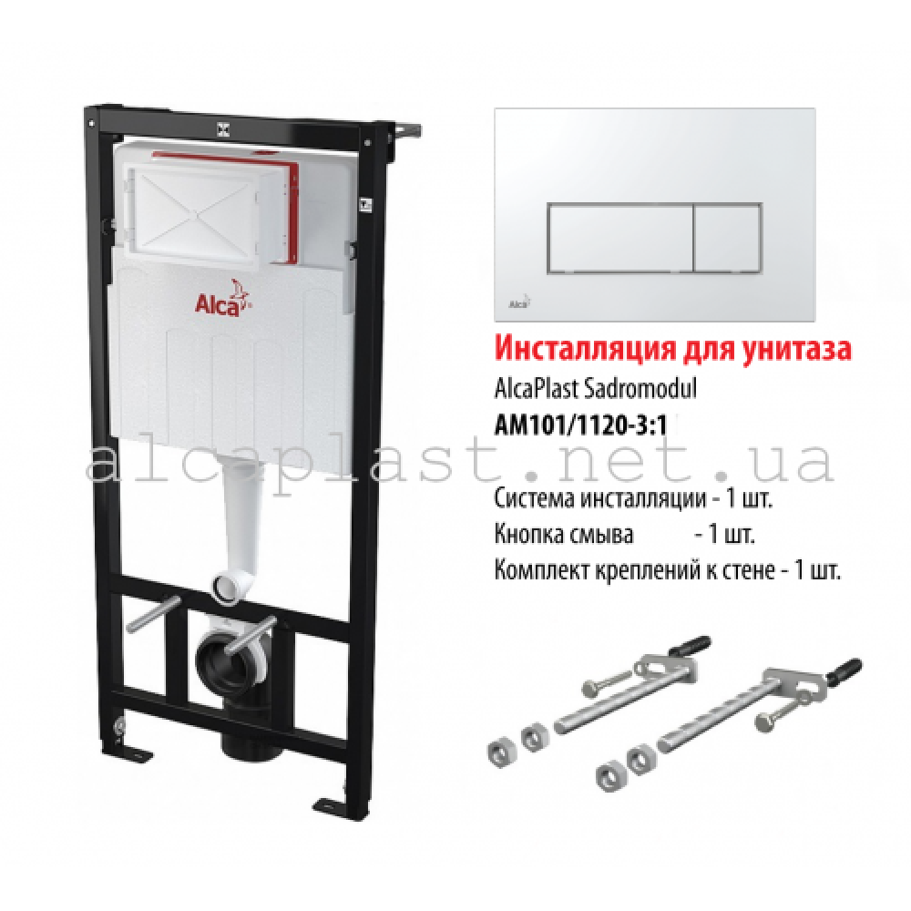 AlcaPlast AM101/1120 – це інсталяція для підвісного унітазу (монтажна рама із вбудованим бачком), яка встановлюється у стіну або перегородку.