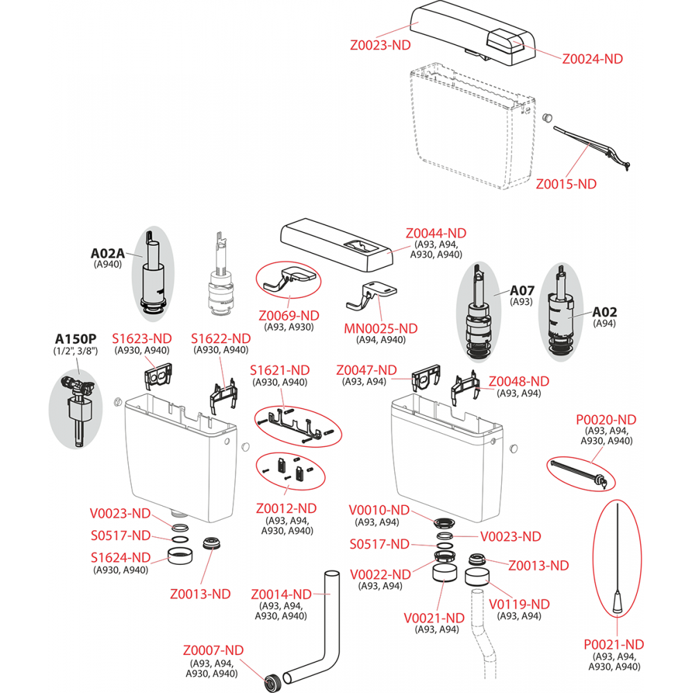 • Комплект для змиву, призначений для низькорозташованого бачка (кнопка мала і велика)