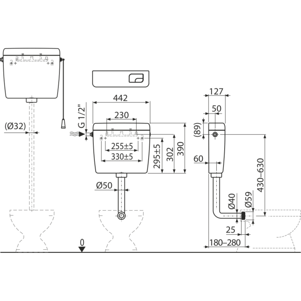Універсальний бачок для унітазу Alcaplast A940-H-3/8
